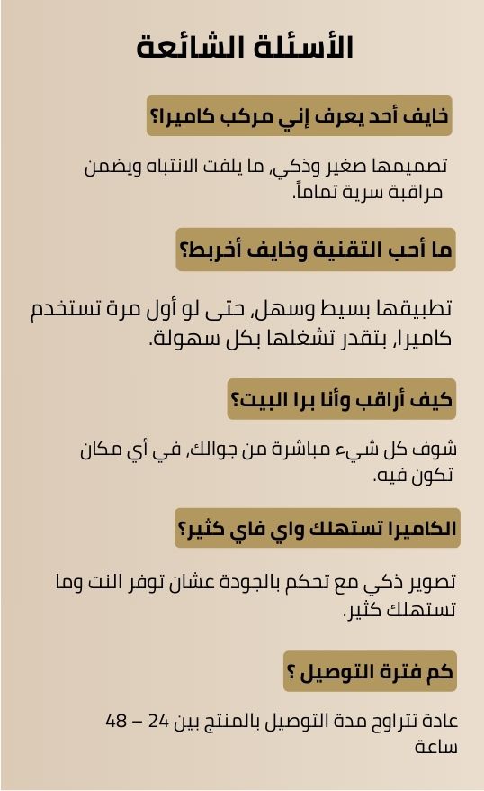 الكاميرا صغيرة وسهلة فالإستخدام نقدر نراقب البيت في أي وقت وأنا براحة تامة